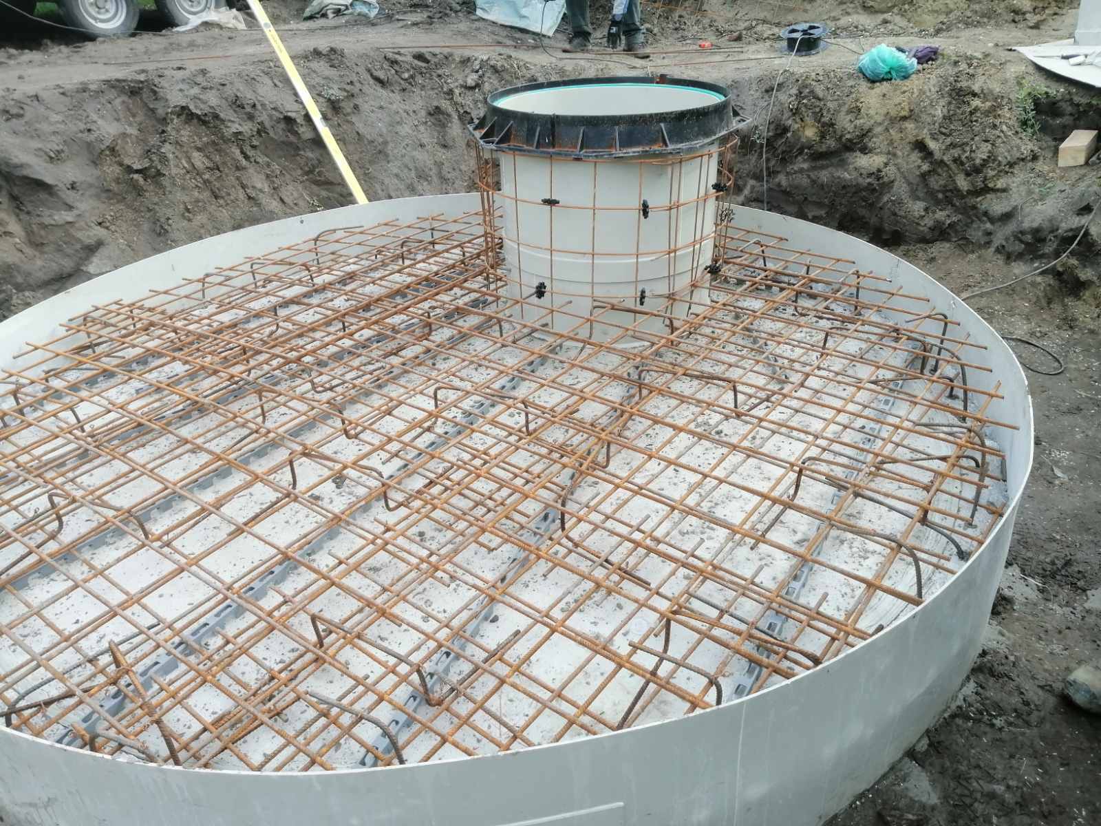 A tartálytest és műanyag zsalu közötti gyűrűstérben kell elhelyezni a vashálót és betonnal kiönteni, majd ugyanezt a födém részén is.