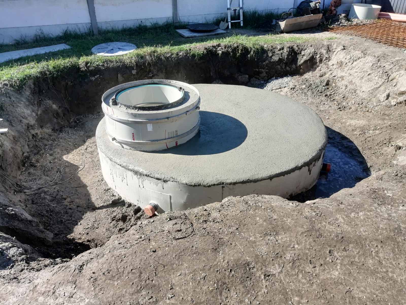 A külső műanyag fal védi a betont a talajvíz okozta duzzadásos, vagy oldódásos betonkorrózió ellen, a belső fal pedig teljes vízzáróságot biztosít. A beton fogja súlyozni a tartályt a talajvíz felhajtó erejével szemben. Ezek alapján talajvizes a területen a lehető legjobb megoldást biztosítja az ügyfeleknek. A becsatlakozó csonk a tartály falába kerül behegesztésre, igény szerinti méretben, melyre KG-PVC csővel lehet csatlakozni.