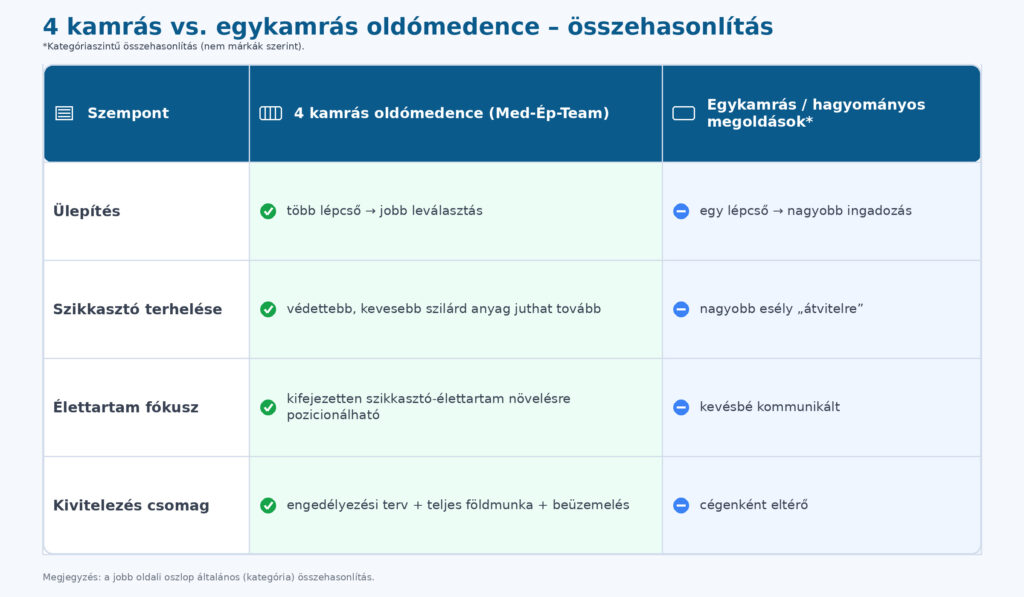 4 kamrás oldómedence előnyei: